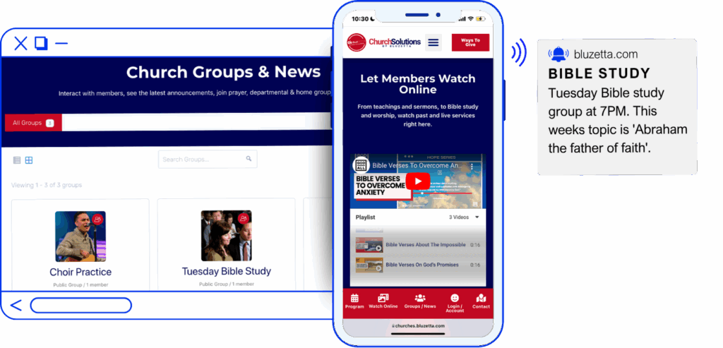 Your Church Website + App, Ready to Make Disciples. No barriers. No middlemen. Your members grow directly with you – and you stay connected with them at all times.
