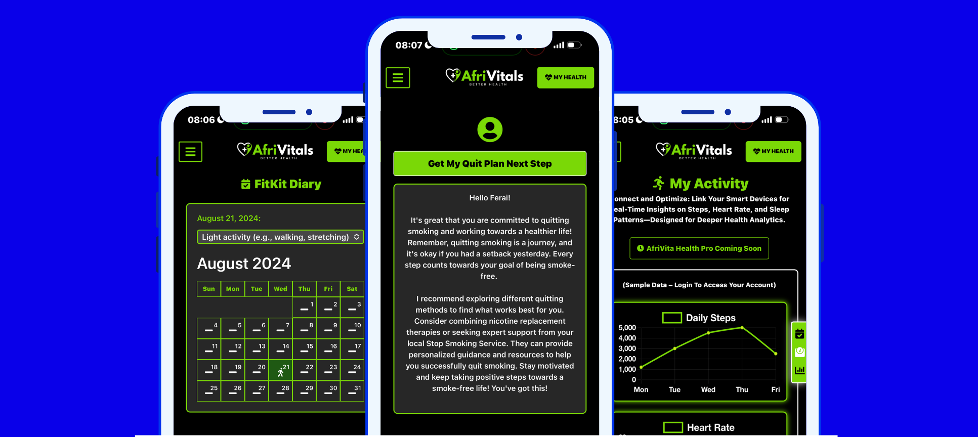 A complete platform – we designed an engaging web site and PWA app accessible across all devices, and integrated with AI and wearable hardware to give user deeper health insights